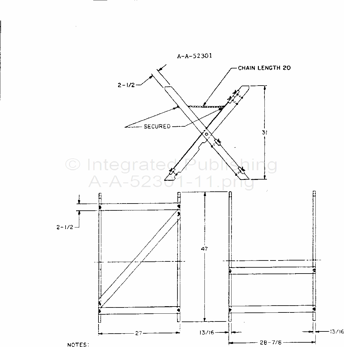 4. THE BOLTS, WING NUTS, WASHERS, SCREWS, AND CHAIN SHALL BE COMMERCIAL GRADE CORROSION RESISTANCE. THE BOLTS SHALL HAVE A WASHER UNDER EACH HEAD AND EACH WING NUT. SECURE CHAIN WITH SCREW EYES.