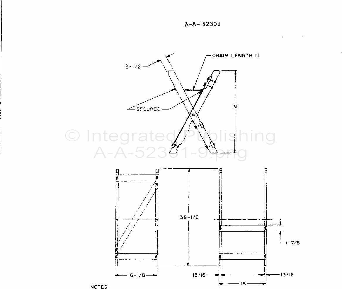4. THE BOLTS, WING NUTS, WASHERS, SCREWS, AND CHAIN SHALL BE COMMERCIAL GRADE CORROSION RESISTING STEEL, OR SHALL BE TREATED FOR CORROSION RESISTANCE. THE BOLTS SHALL HAVE A WASHER UNDER EACH HEAD AND EACH WING NUT. SECURE CHAIN WITH SCREW EYES.